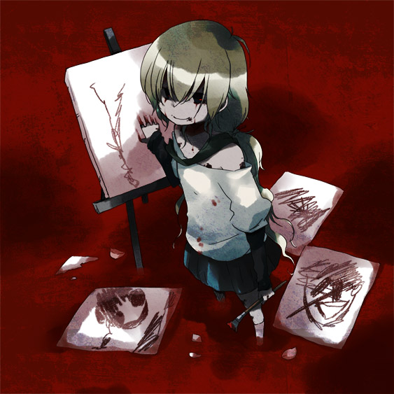 ホラー映画とかで子供の描く絵って何故あんなに怖いんだろうなぁと思いながら描きました。SIRENの屍人は生前と同じ行動を繰り返すということで、アーチは通常営業であります。絵筆ボルグで刺すよ!